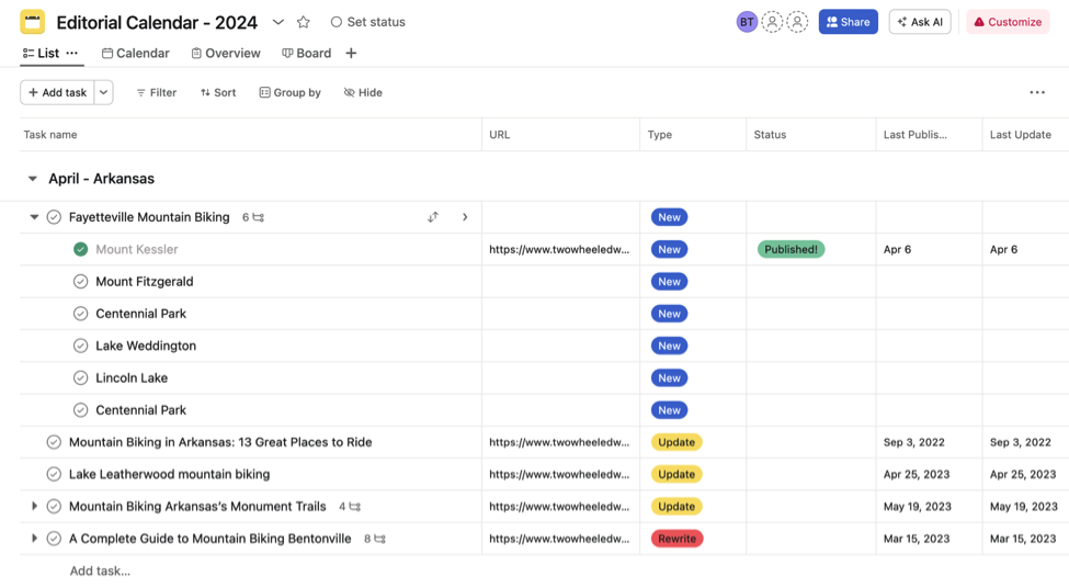 I recently started using Asana to keep my blog posts organized and help me maintain some sort of strategy when it comes to updating and writing new blog posts.