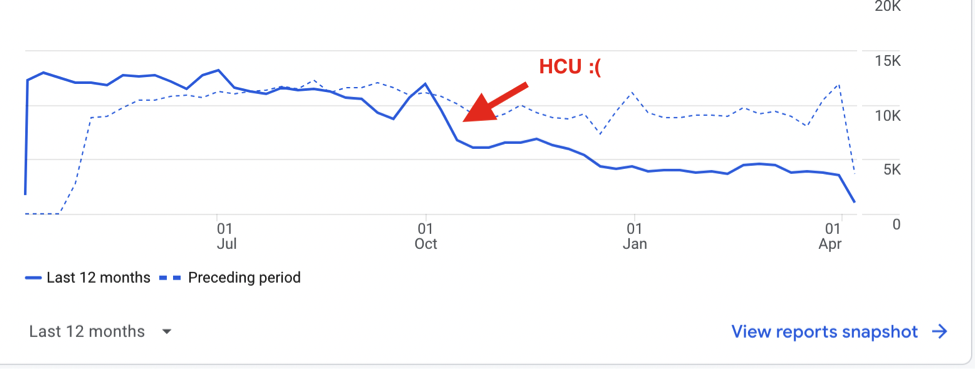 I was seeing pretty steady traffic growth until… the Helpful Content Update in September 2023.